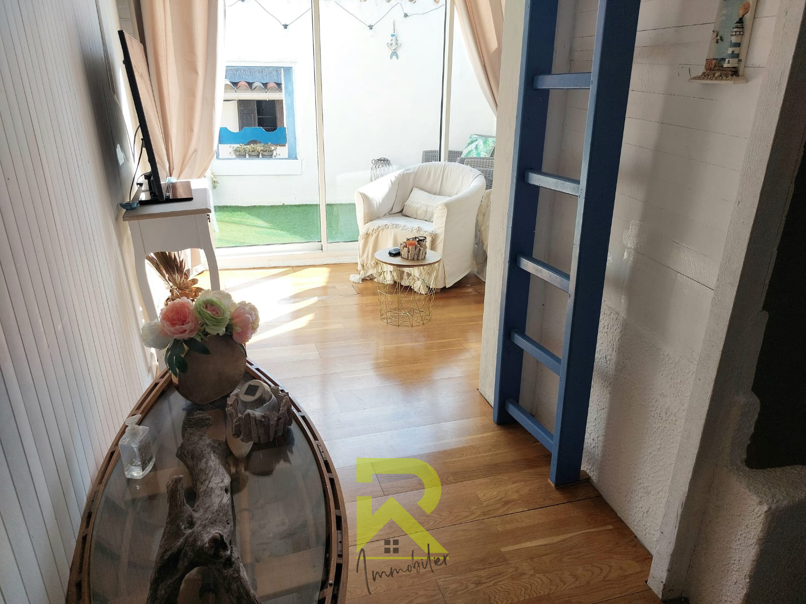 - **Au second :** Une charmante chambre et un salon ouvert sur une magnifique terrasse tropézienne pour profiter de l’extérieur !