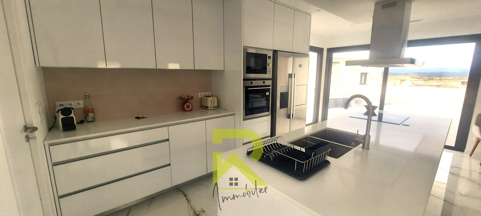 Superbe villa 5 piéces en R+1 d'environ 132m² habitables sur 573m² de terrain avec piscine et garage 35m². Implantée sur les hauteurs de Thézan vous profiterez d'une vue dominante et panoramique sur les Pyrennées et les monts du Caroux. Elle se compose en rez de chaussée d'un grande piéce de vie baignée de lumiére avec sa cuisine américaine équipée, d'un grand garage et son espace buanderie, d'un w.c. indépendant avec lave mains, d'une suite parentale avec salle d'eau et dressing. A l'étage 3 chambres spacieuses dont 2 avec terrasses se partagent une grande salle de bains ainsi qu'un w.c. indépendant avec lave mains. Cette maison est neuve avec climatisation gainable, ballon thermodynamique, marbre, parquet, etc..., beaucoup d'autres prestations de belle facture vous attendent, pour les découvrir lors d'une visite, appelez Catherine JEAN au o6.58.49.51.41.Agence Robert immobilier, Béziers