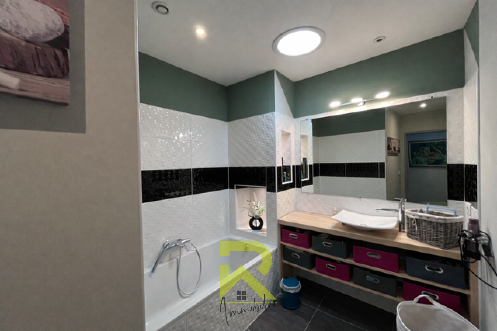Au rez-de-chaussée un vaste garage ainsi qu'une première suite parentale, idéale pour recevoir ou préserver une indépendance totale.